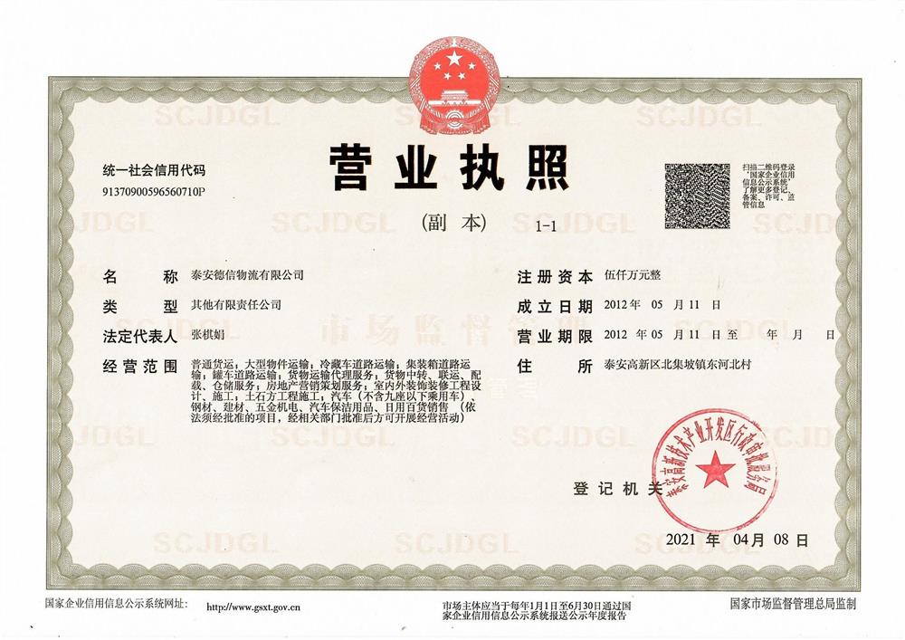 泰安物流,泰安物流電話,泰安德信物流有限公司位于弛名中外的泰山腳下,南靠儒家思想發源地孔孟之鄉-曲阜。手機:15605380577 ,公司位于山東省泰安市岱岳區滿莊鋼材市場北路77號,交通地勢便利,是經國家相關部門批準注冊的企業,是一家集倉儲,物流,專線運輸,大件運輸,第三方物流的大型物流綜合性企業,公司是中華人民共和國交通運輸部批準的二級企業,經營項目除物流運輸服務外擴展十余項。我單位主要承接全國各地的大中型汽車運輸業務。現公司擁有自備車輛百余部,掛靠車輛千余部,日派車輛能力二百余部,外輸貨物可達六千余噸,節假日可保證正常運輸,我單位還是泰安市國稅局核準的一般納稅人業戶可及時提供運輸發票,方便運費結算!